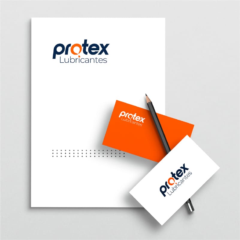 Diseño de logo e identidad visual para Protex Lubricantes, una marca especializada en lubricantes para maquinaria en la industria textil.